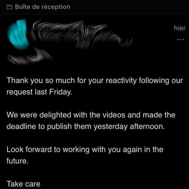 237 films est une société de production vidéo basée à Paris fondée par un ancien grand reporter cameraman à la fin des années 2010. De grandes entreprises telles qu'Ikea, Toyota Racing, SNCF, Bouygues Telecom et bien d'autres nous font confiance. Nous croyons que chaque histoire mérite d'être racontée avec créativité et passion, et nous nous engageons à produire des films uniques, innovants et inspirants pour répondre à tous vos besoins.